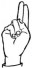 На ћирилици написано ЊЕГОСЛАВ МИЛУТИНОВИЋ састоји се из 19 слова [?]. Исписано ћириличном једноручном азбуком за глувонеме: